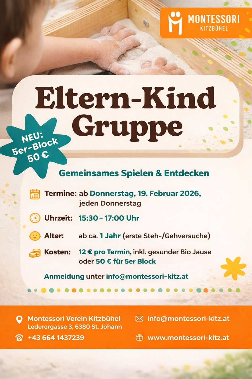 Sei dabei, wenn dein Kind erste Gruppenerfahrungen macht, Montessori Materialien kennenlernt, Finger - und Bewegungsspiele entdeckt und eine gesunde Jause gemeinsam vorbereitet und verputzt wird.